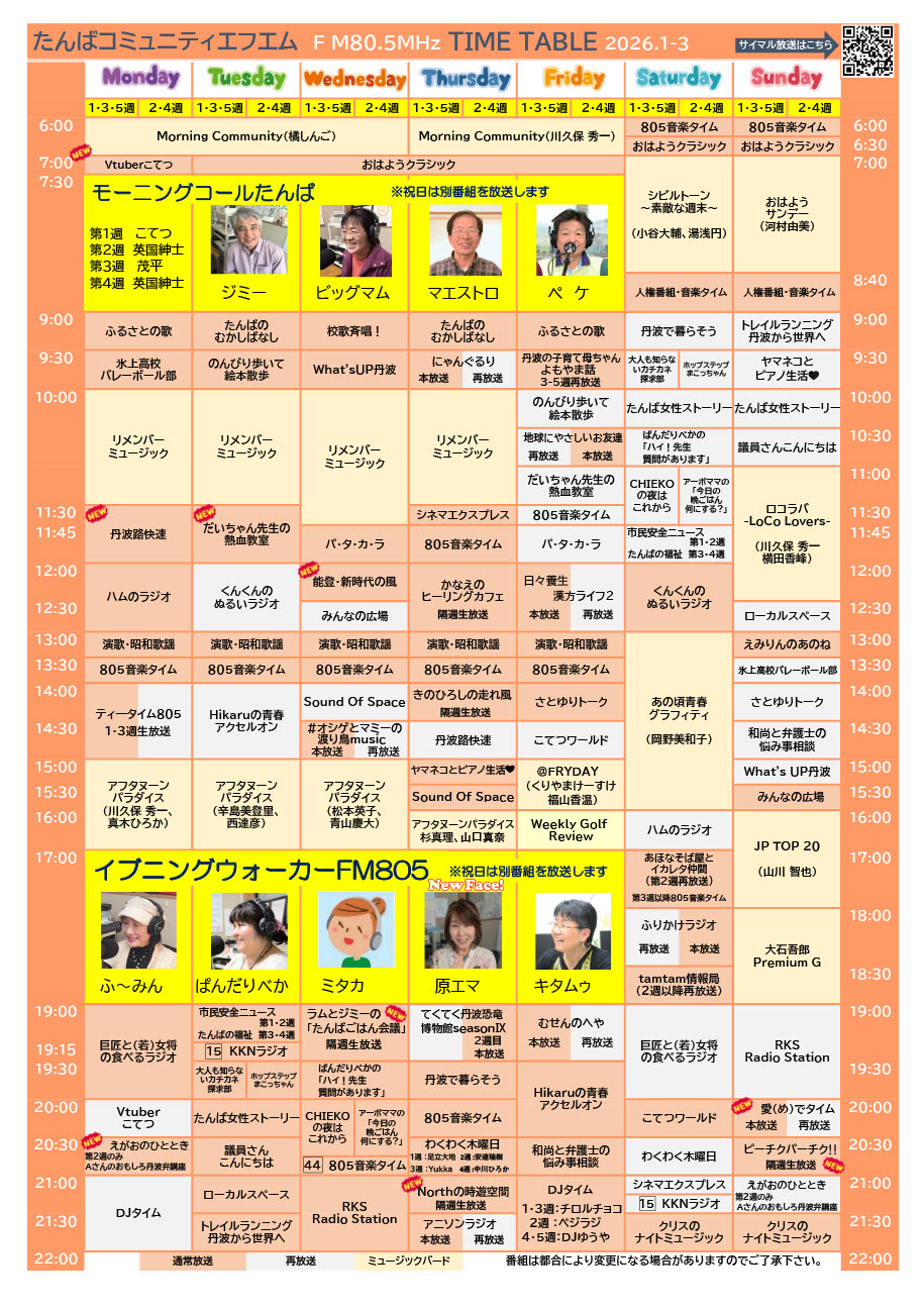 2026年1月~3月の番組表
